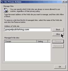 Cookies For you to use MyHealthyChurch.com your browser must be set to accept cookies. If cookies are not allowed, the store cannot maintain your shopping cart and will be unable to identify you from page to page and through the checkout process. FACT: The most common symptom users encounter when their systems are not allowing cookies to be exchanged, is the loss of items in their shopping cart and or adding items to the shopping cart and not finding them when viewing the carts contents. The following information provides a basic understanding of what a cookie is and what it does. Past this set of information you will find tips on how to allow cookies to be exchanged with MyHealthyChurch.com including a walkthrough for setting up the most recent versions of Internet Explorer for PC and MAC users. What Is a Cookie? A small text file placed on your hard drive by a Web page. It serves as your identification card, and cannot be executed as code or deliver viruses. It is uniquely yours and can be read only by the site that gave it to you. A Cookie's Purpose Is: To tell MyHealthyChurch.com that you returned to that Web page. How a Cookie Helps You: It saves you time. Cookies let us to know who you are when you return, allowing you to leave in the middle of an order and return later to finish it without losing your shopping cart contents. How a Cookie Helps MyHealthyChurch.com: It allows us to be more efficient. We can make your shopping experience as smooth and trouble-free as possible by saving you time. If You Want To Control Which Cookies You Accept: You can tell your browser to accept all cookies or to alert you every time a cookie is offered. Then you can decide whether to accept one or not. Use the following walkthroughs to allow MyHealthyChurch.com permission to exchange cookies with your computer. Internet Explorer 6.0 & 7.0 1. From the Tools drop-down menu, click Internet Options 2. Click the Privacy tab, 3. Click the Edit (Sites in IE 7.0) button 4. Type MyHealthyChurch.com in the address box, then press Allow and OK buttons Internet Explorer 5.X 1. From the Tools drop-down menu, click Internet Options. 2. Select the Security tab, the Trusted sites icon, then press Sites button 3. Type MyHealthyChurch.com in the address box, press Add button, then click OK Internet Explorer 4.0 1. Choose View, then 2. Internet Options. 3. Click the Advanced tab, 4. Scroll down to the yellow exclamation icon under Security and choose one of the three options to regulate your use of cookies. Mac Internet Explorer 5.x users 1. From the Edit drop-down menu, go to Preferences 2. Go to Receiving Files in drop-down menu 3. Select Cookies 4. Go to When receiving cookies: and select Ask for each site in drop-down menu 5. Accept all cookies from MyHealthyChurch.com iPhone users 1. Go into "Settings" 2. Select the tab for "Safari" 3. Find and click the option "Accept Cookies" 4. Select "From visited" If you are unable to activate your cookies or need help setting your cookies for browsers other than the ones listed above, please contact your Internet Service Provider. To Place An Order By Phone Call: Toll Free in the US: 1.855.642.2011 |