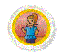 Fun, full-color design on satin badge.
