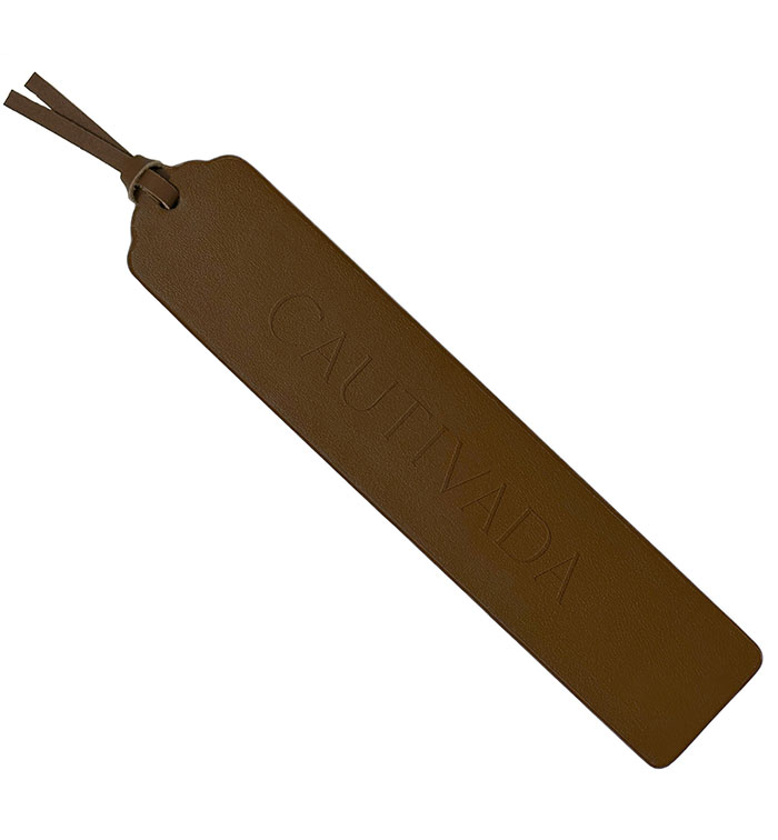 Para tus lecturas favoritas: Un marcador de cuero marrón natural con la palabra