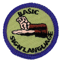 Basic Sign Language Merit is a blue (basic) skill merit earned by completing a set of fun and interactive requirements related to sign language. This merit