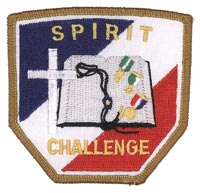 Earned after completing 100 Spirit Challenge lessons. Worn on the Navy Awards vest. Embroidered. 3 1/8 x 3"