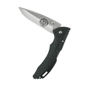 This Royal Rangers® mid-lockback knife with 1-hand open is contoured with a finger groove,