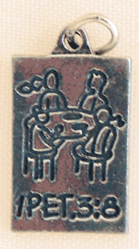 Engraved pewter-finish charms worn on Friends Club Necklace, sold separately. 1/2 x 3/4"