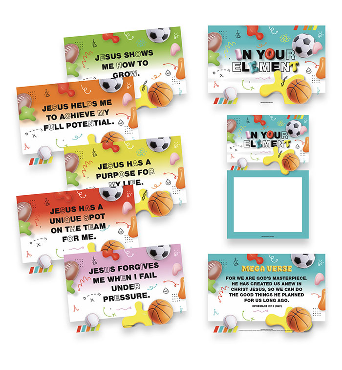 These 8 posters share the daily MEGA Points, MEGA Verse, and 2 posters for announcing and promoting your camp. New larger size. 24" x 36"