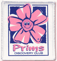 Prims logo on satin badge. 2 1/2 x 2 3/4"