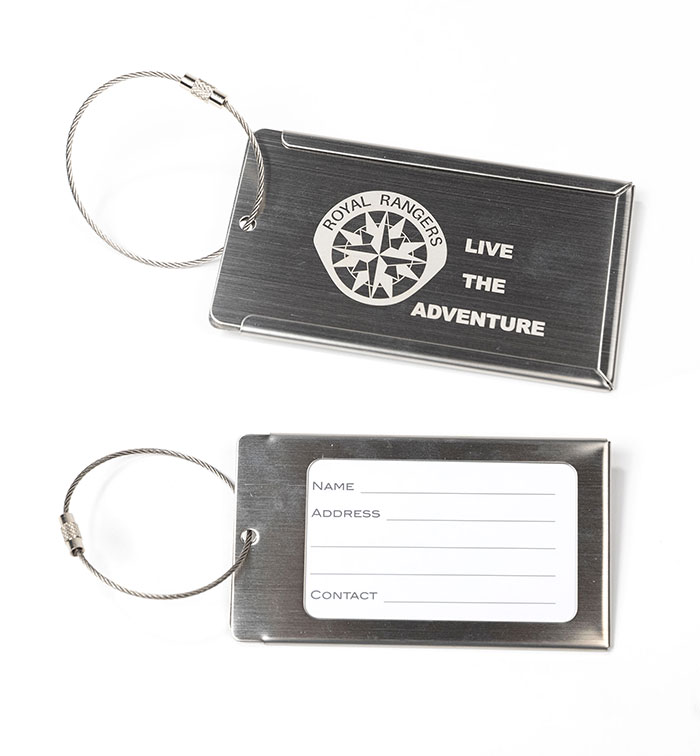 Royal Rangers Stainless Steel Luggage Tag. Customized with a lasered Royal Rangers Logo for travelers