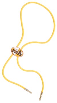 Yellow cord bolo tie with gold-plated tips and adjustable, enamel-faced Ranger Kids logo. Can be worn by leaders or boys.