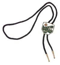 This black cord bolo tie with gold-plated tips and adjustable, enamel-faced Expedition Rangers logo.