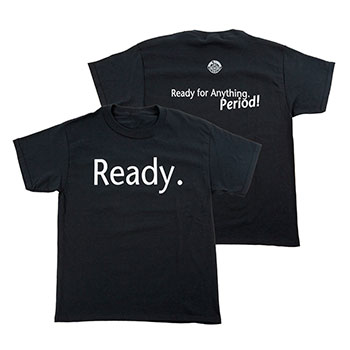 Back by popular demand! Deck out your entire outpost with the classic Royal Rangers Ready T-shirt and get pumped up for adventure, any place, any time. Black. 100% preshrunk cotton.