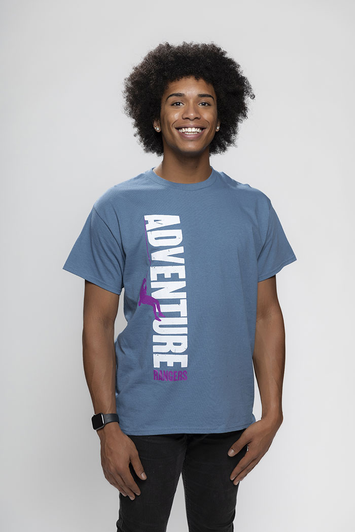 Easily identify Adventure Rangers and their leaders with these blue Adventure Rangers tees. Made with 100% heavyweight preshrunk cotton, you and your Rangers can look good and feel comfortable. A 2½” Royal Rangers logo is positioned just below the back collar. Note: Color may vary due to dye lot.