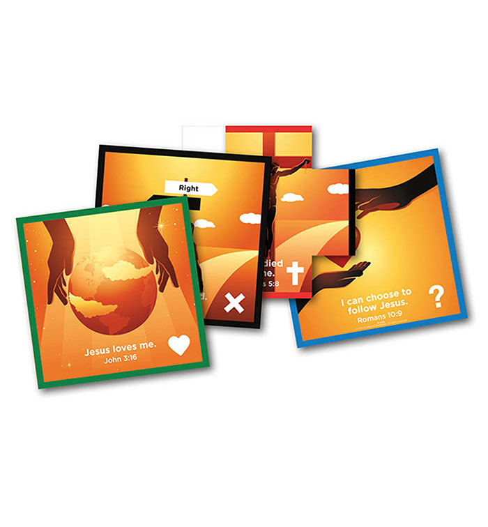 Make sharing your faith in Jesus easy and unforgettable with the Salvation Share Square. With this tool, anyone can walk kids through four simple steps that lead to a relationship with Jesus. Thanks to the panel-folding style, kids will be instantly engaged in the gospel story as you reveal each new image.