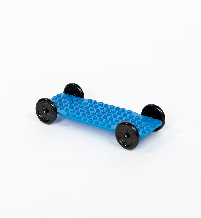 LEGO® Derby car chassis is fully assem-bled with a base plate, PRO Brick Wheels® and nickel-plated